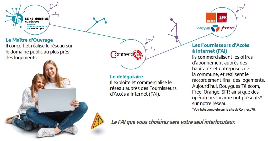 La Fibre : qui fait quoi, avec les explications de la répartition des rôles, entre SMN, Connect76 et les fournisseurs d’accès à Internet.